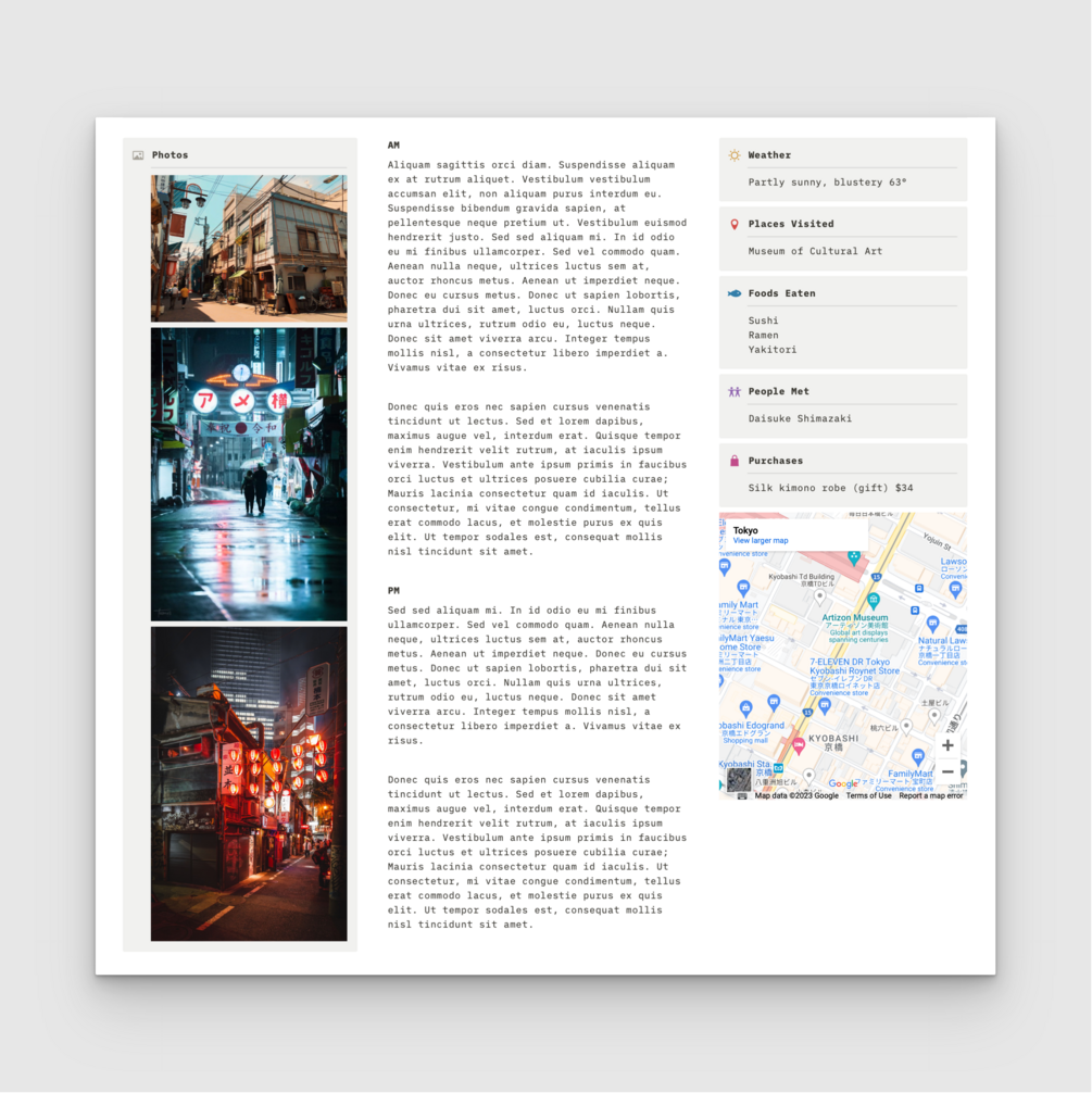 You'll receive the "Passepartout" Travel Manager & Documentation System to duplicate into your own Notion workspace. You'll also receive a demo version, complete with example content. Includes complete getting started support documentation.