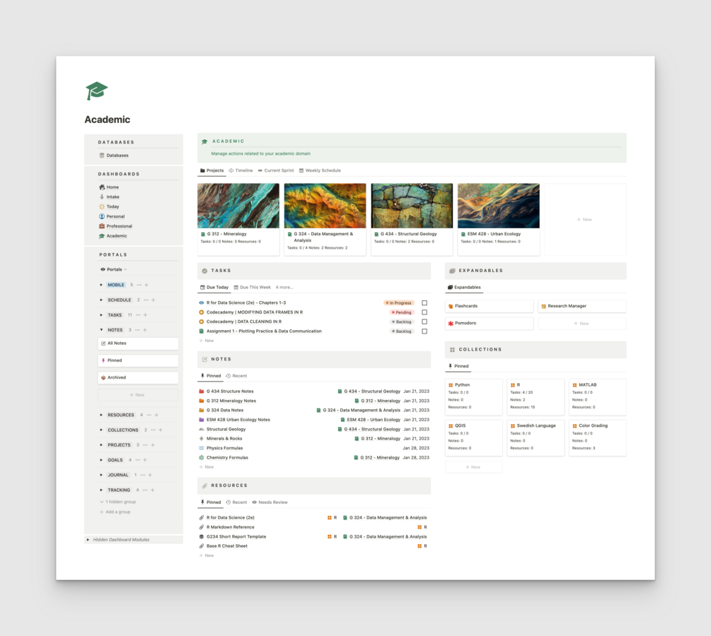 - Manage tasks, notes, and resources across all domains of life – personal, professional, and academic