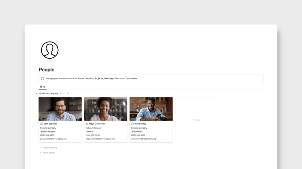 - Manage business contacts and key information about them. Relate people to projects, meetings, tasks,and documents