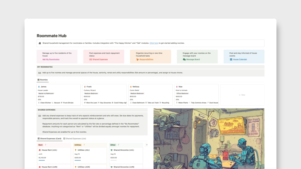 Roommate Hub - Shared Household Management "Kitchenless" Version (Notion Things)